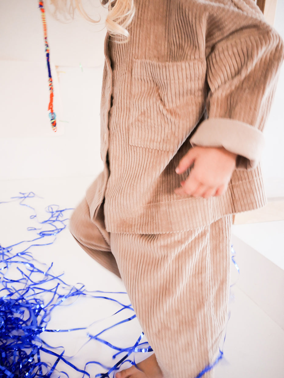 sztruksowa koszula z kołnierzykiem zapinana na drewniane guziczki z kieszonką z przodu. uszyta z bardzo miękkiego sztruksu. dostępna w beżowym kolorze.