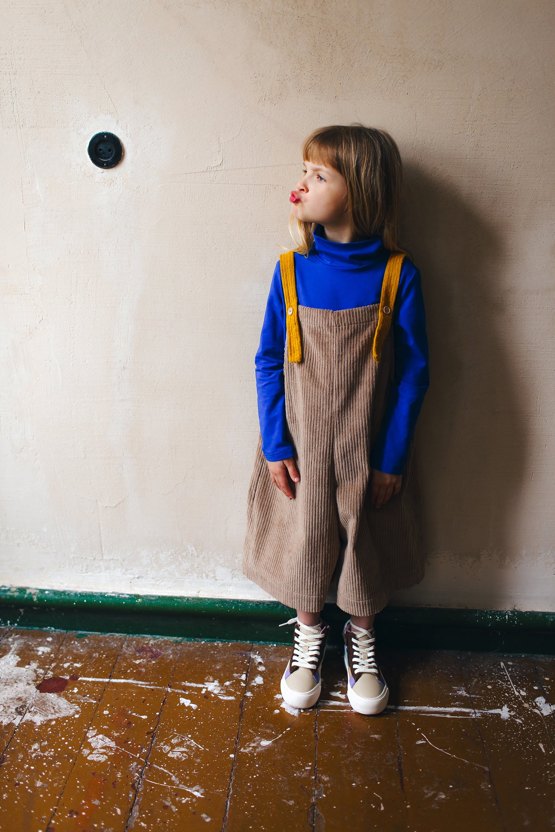 ogrodniczki z szerokimi nogawkami z regulowanymi ramiączkami. uszyte z bardzo miękkiego sztruksu. świetne pasują do naszych sweterków, bluzek z dużym kołnierzem, bluzkami z długim rękawem i golfami.