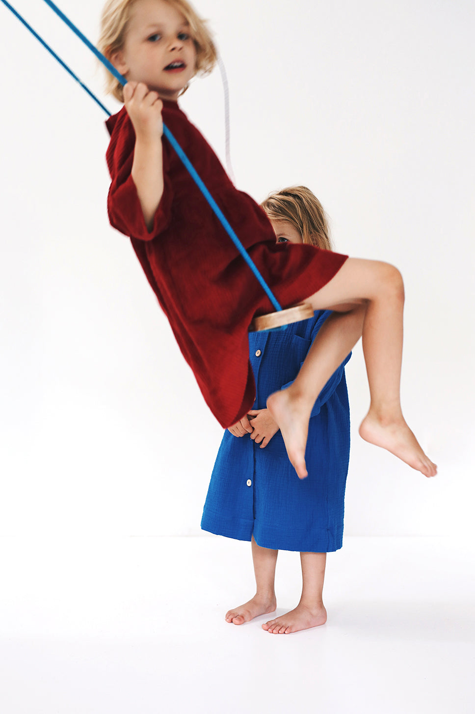 ciemnoczerwona sztruksowa sukienka z guziczkami na plecach- model posesyjny