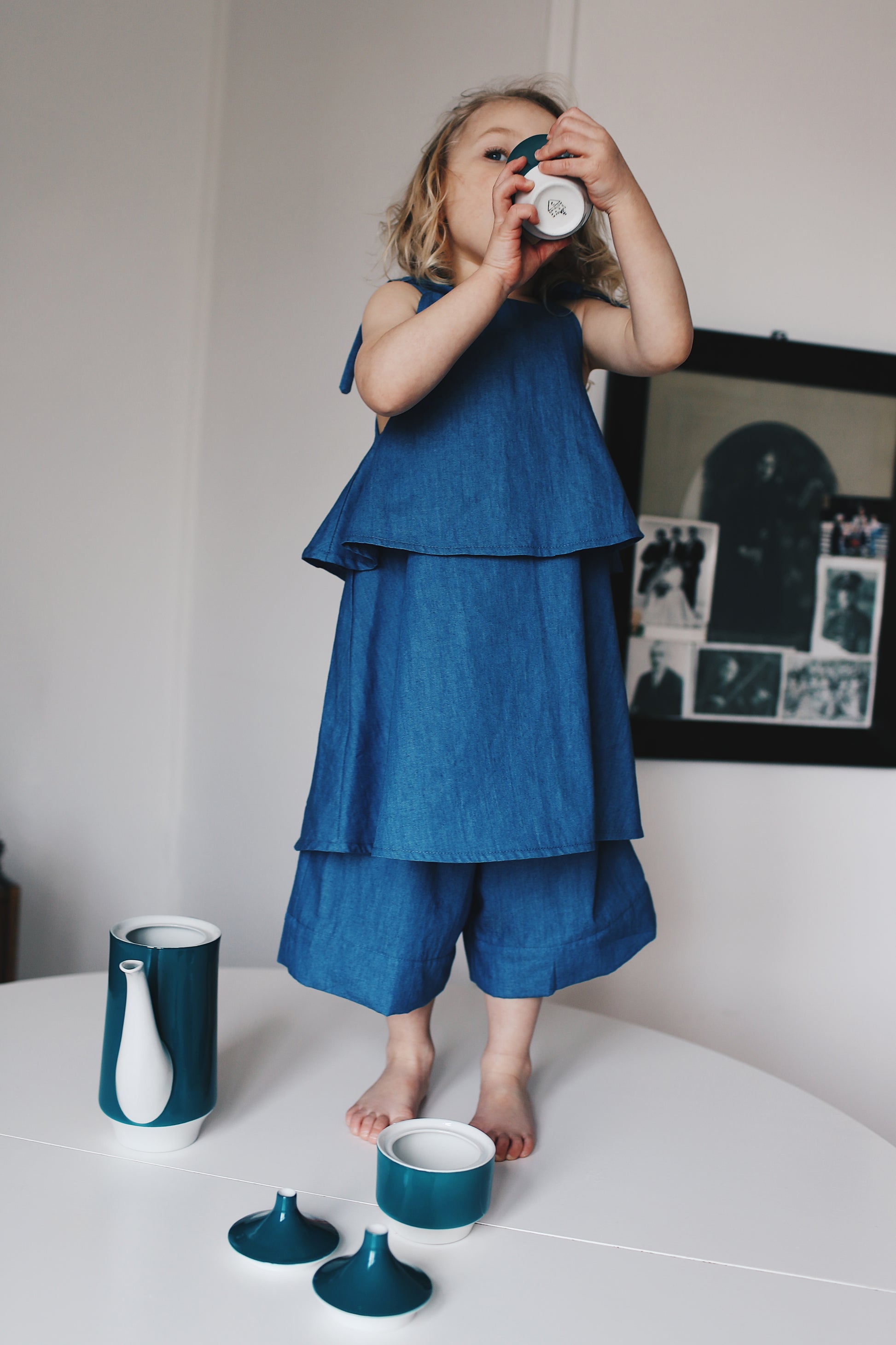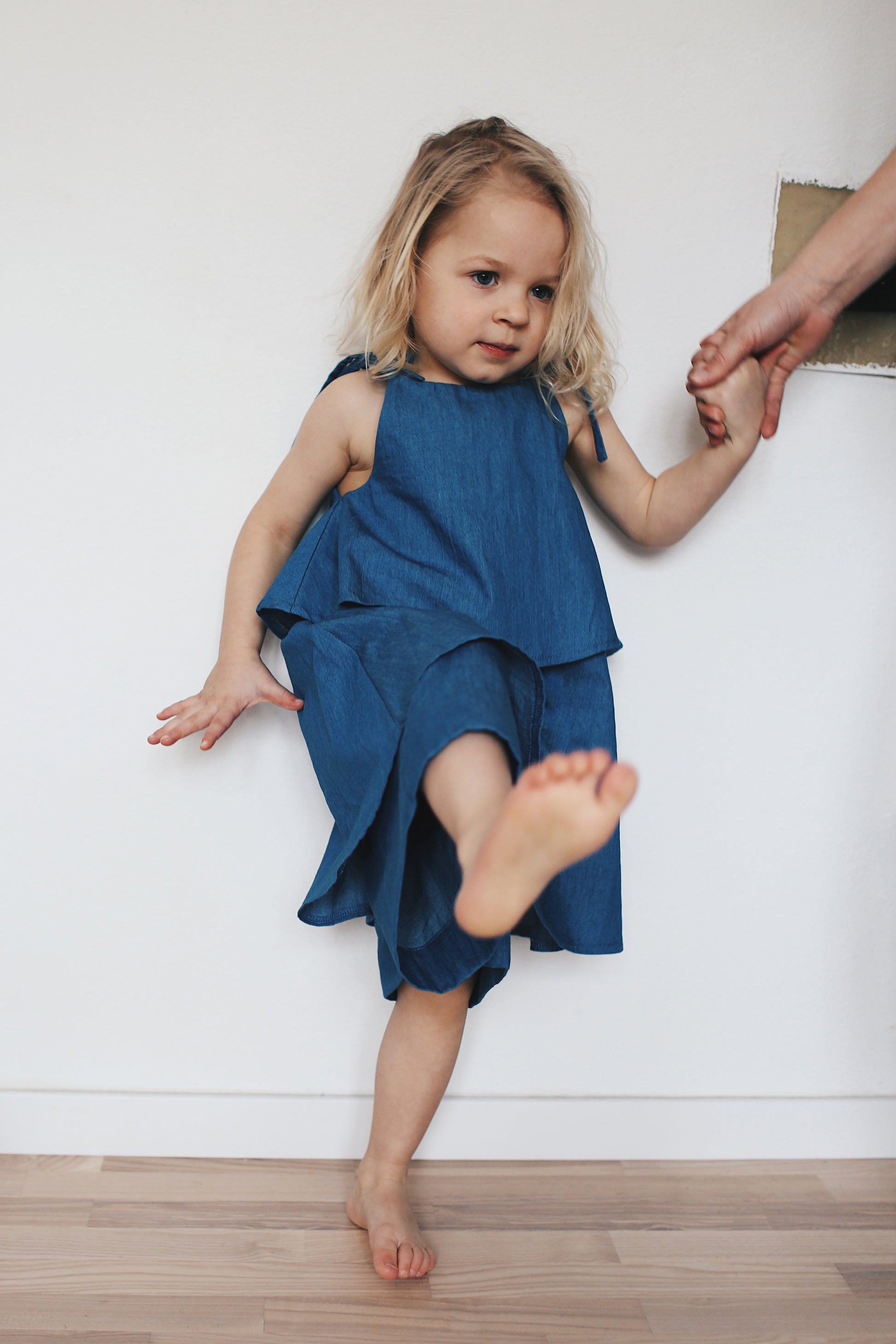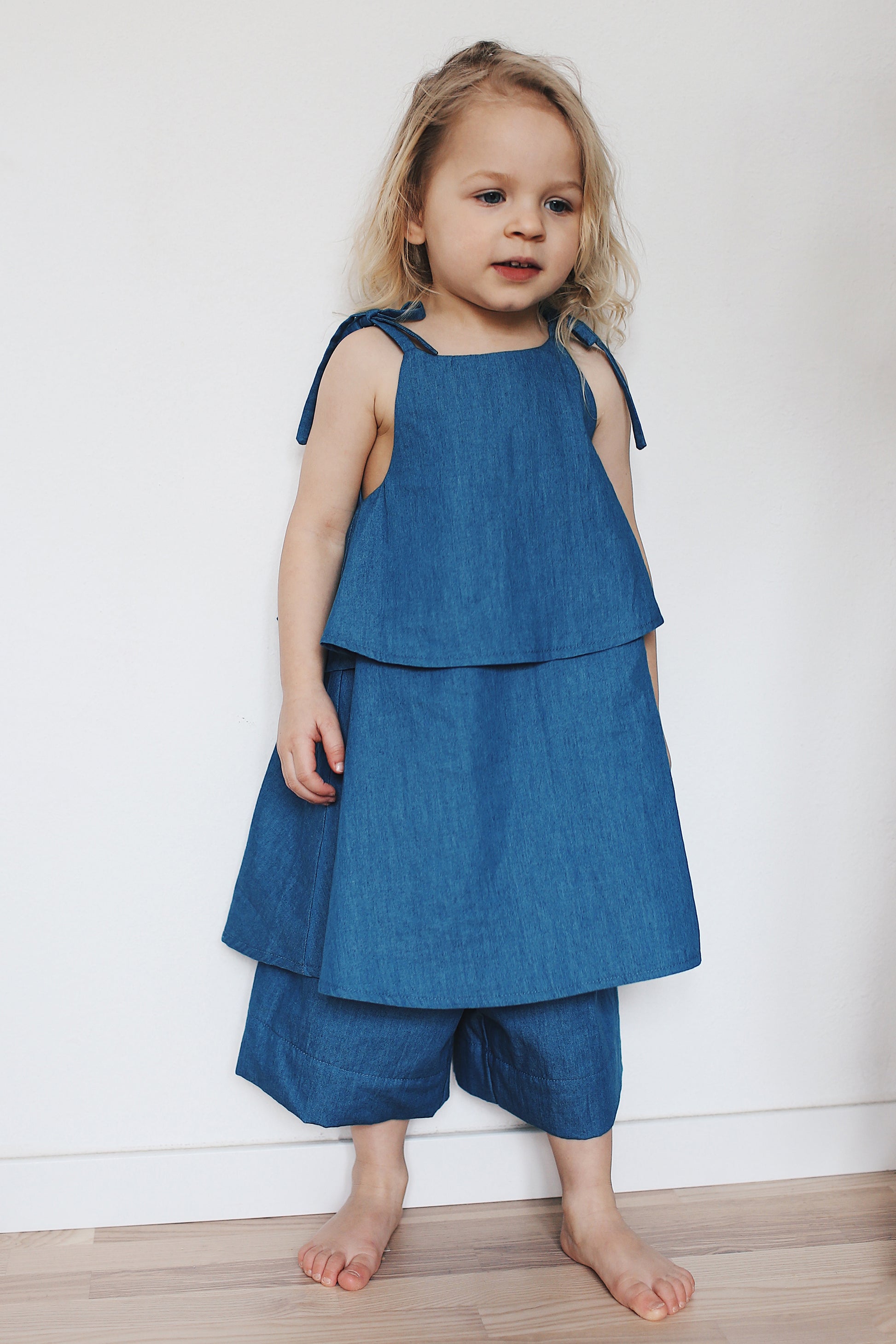 letnia bluzeczka z regulowanymi ramiączkami, uszyta z cienkiego jeansu. świetnie pasuje do krótkich jeansowych kulotów.