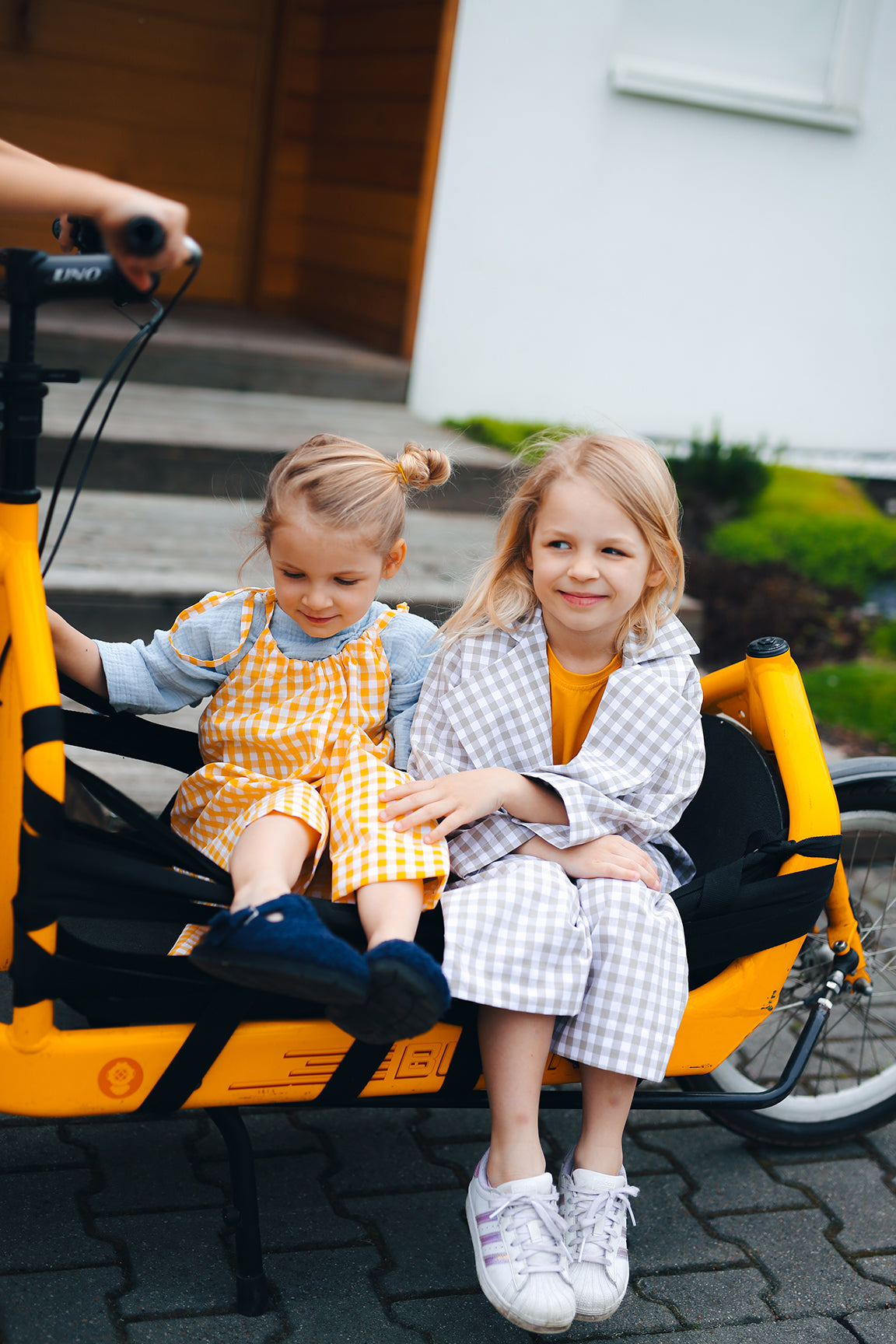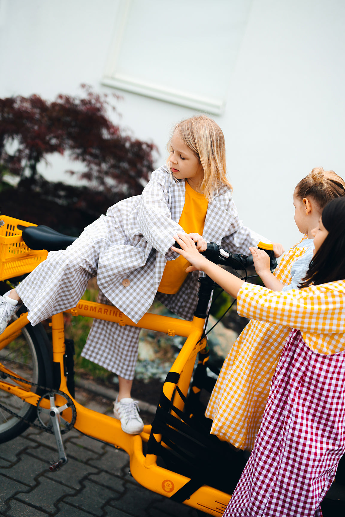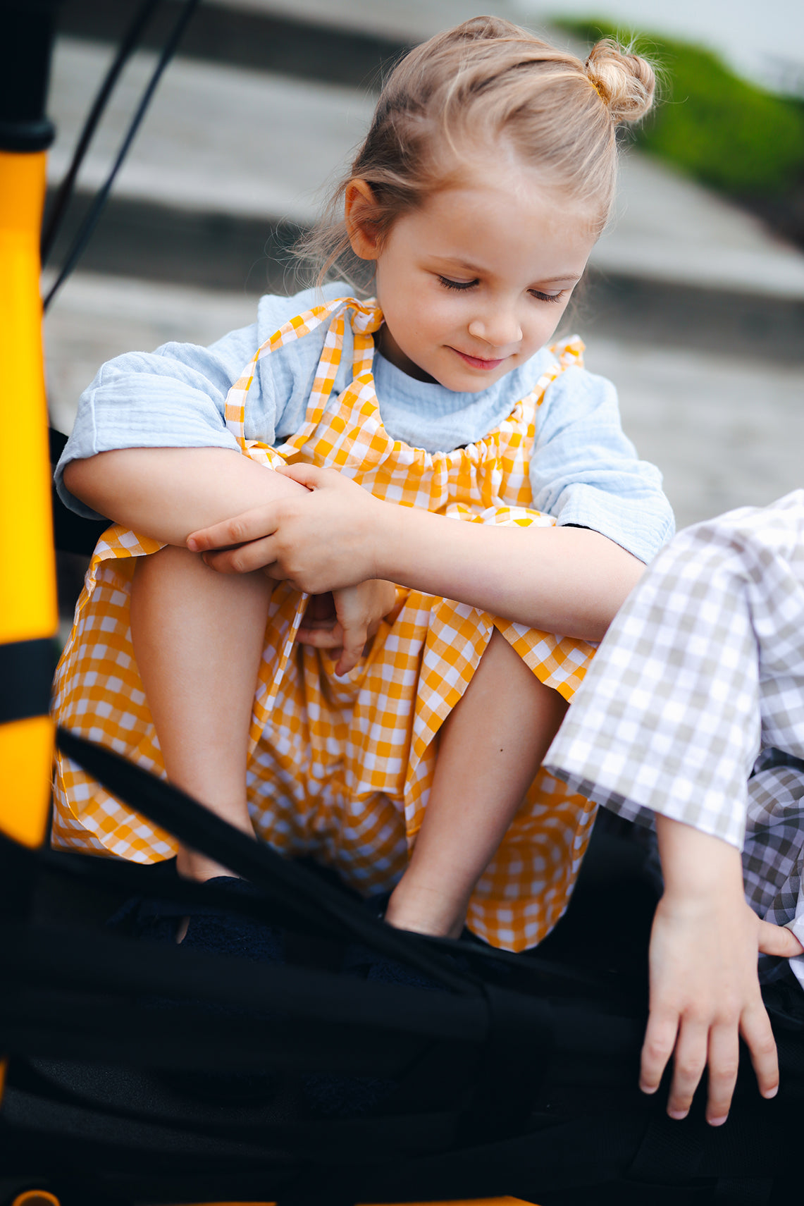 kombinezon z regulowanymi ramiączkami w biało-żółtą kratkę