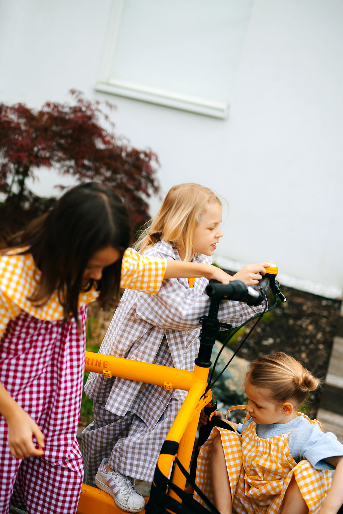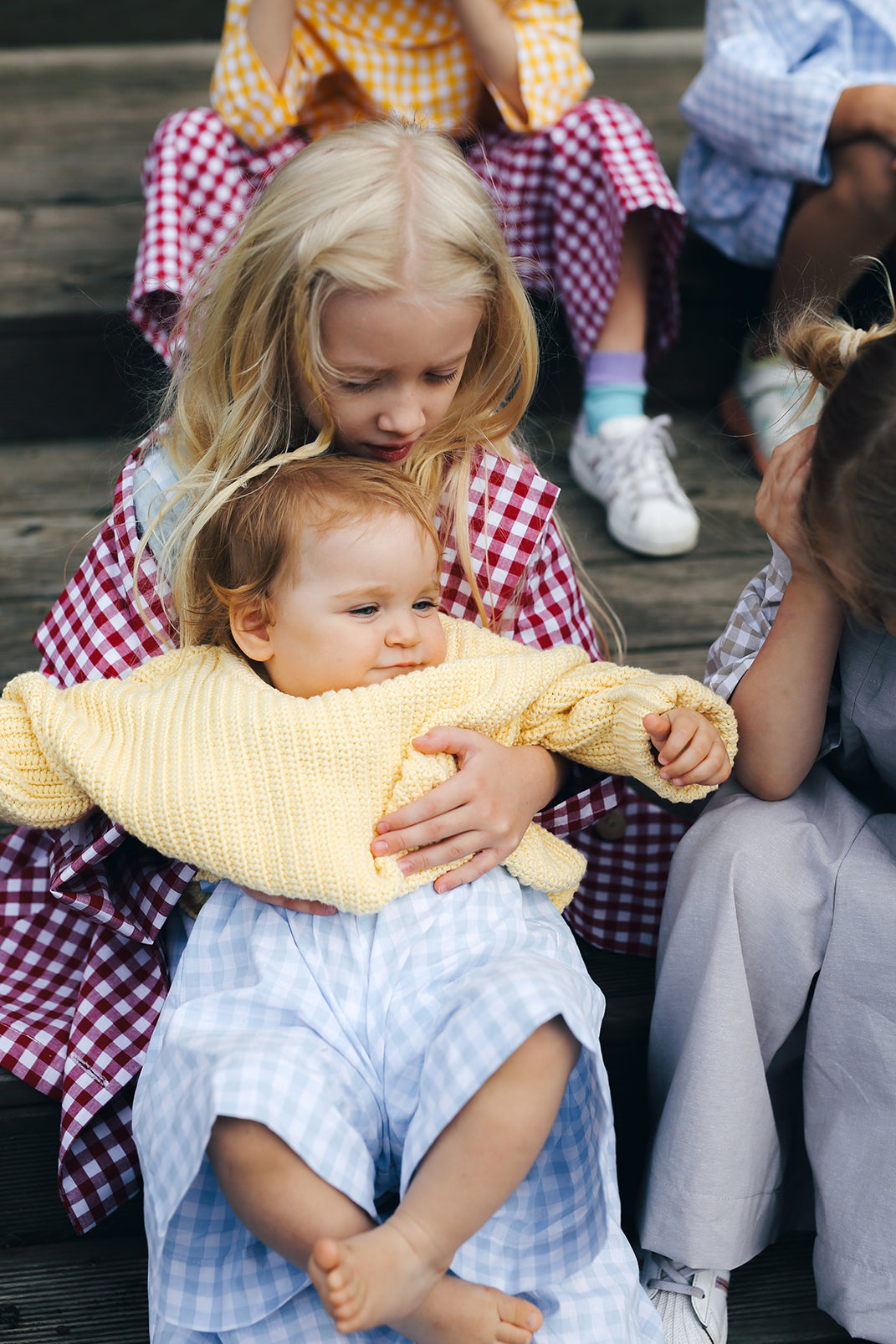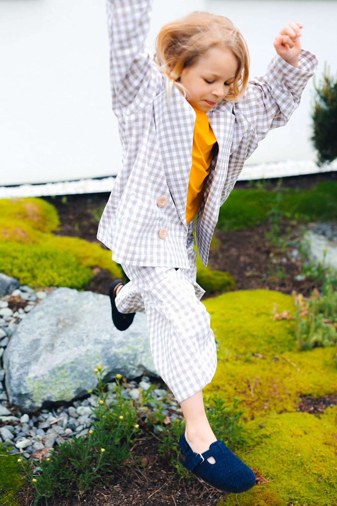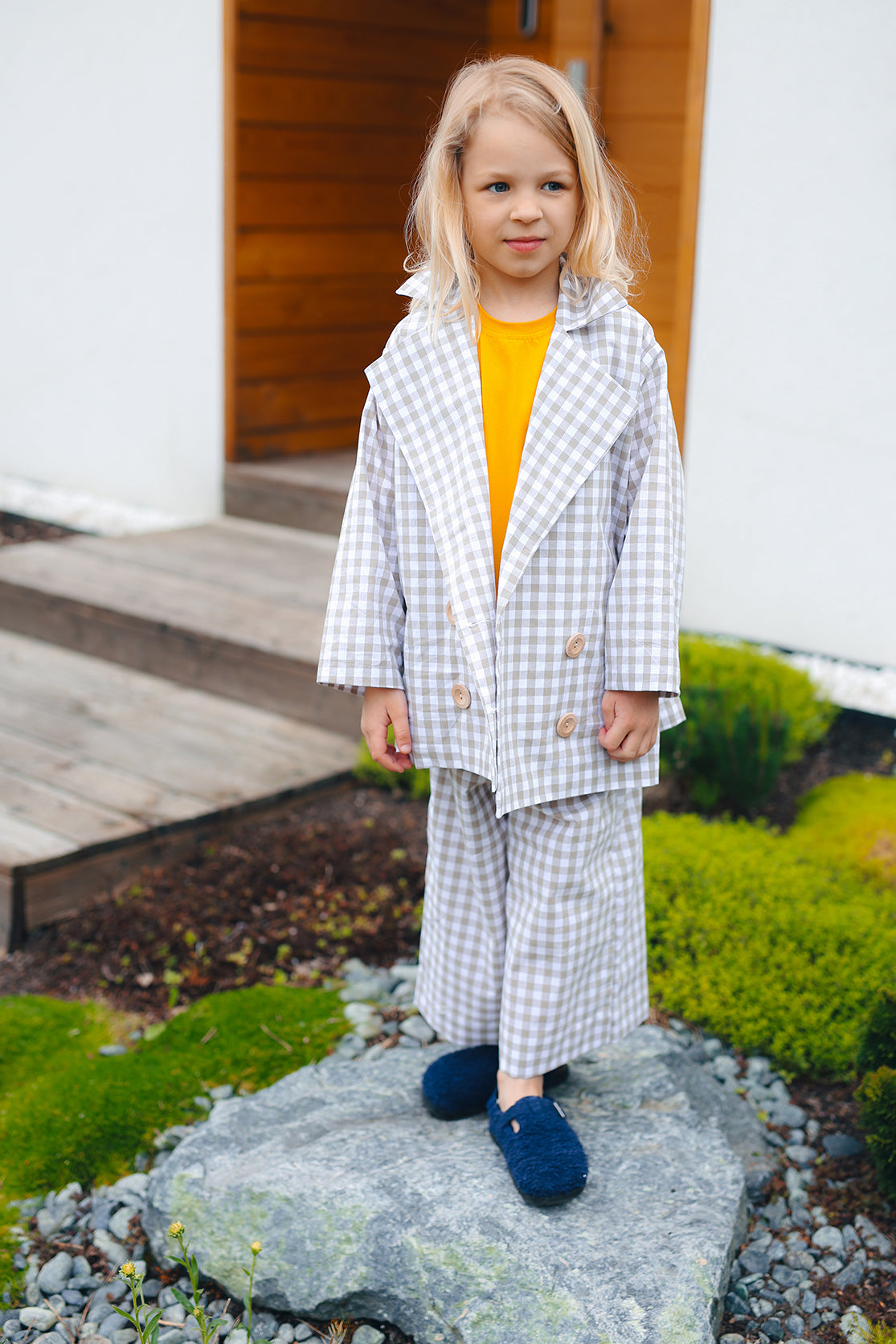 kuloty uszyte z popeliny w niebiesko-białą kratkę. w komplecie z marynarką tworzą odlotowy letni garnitur.
