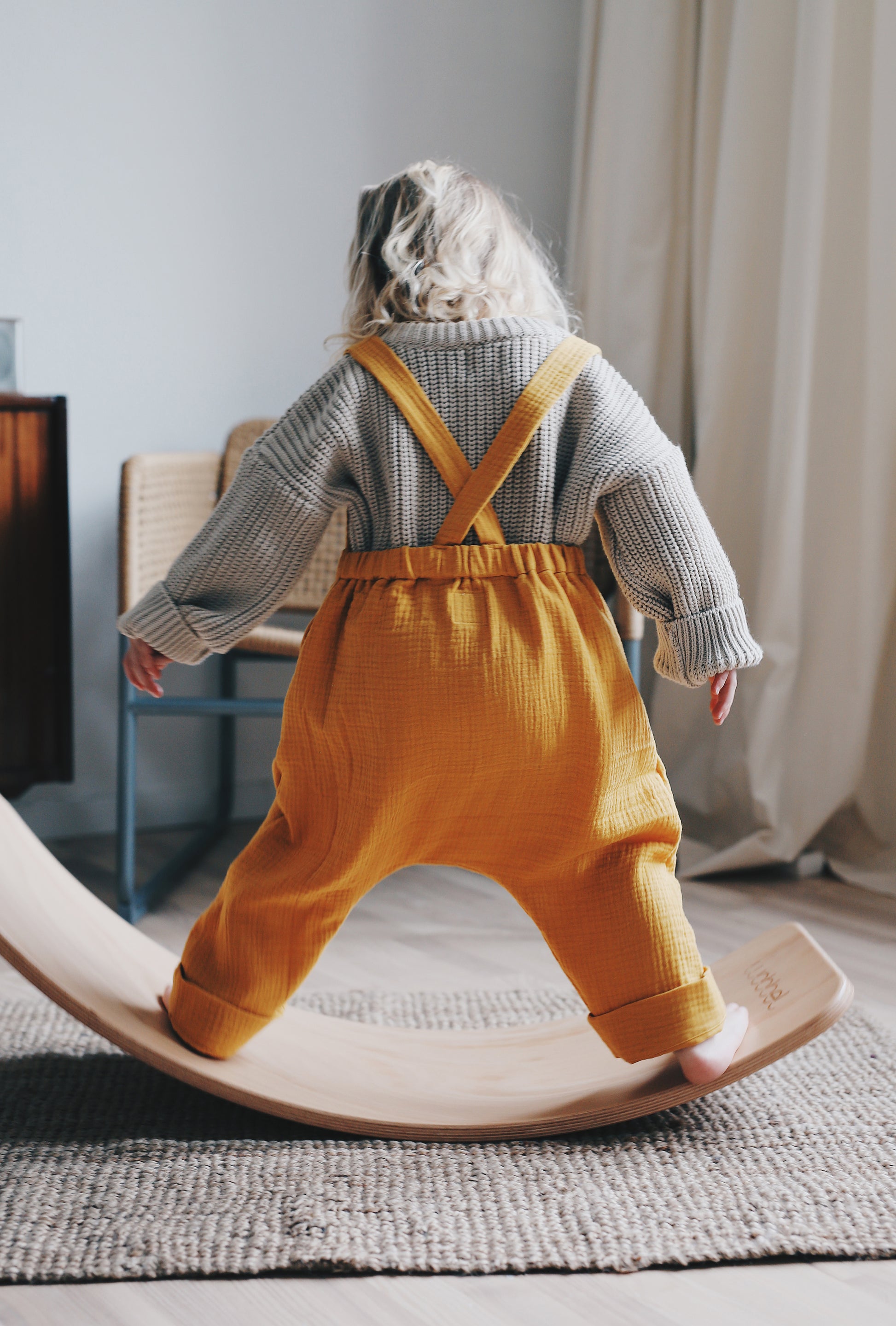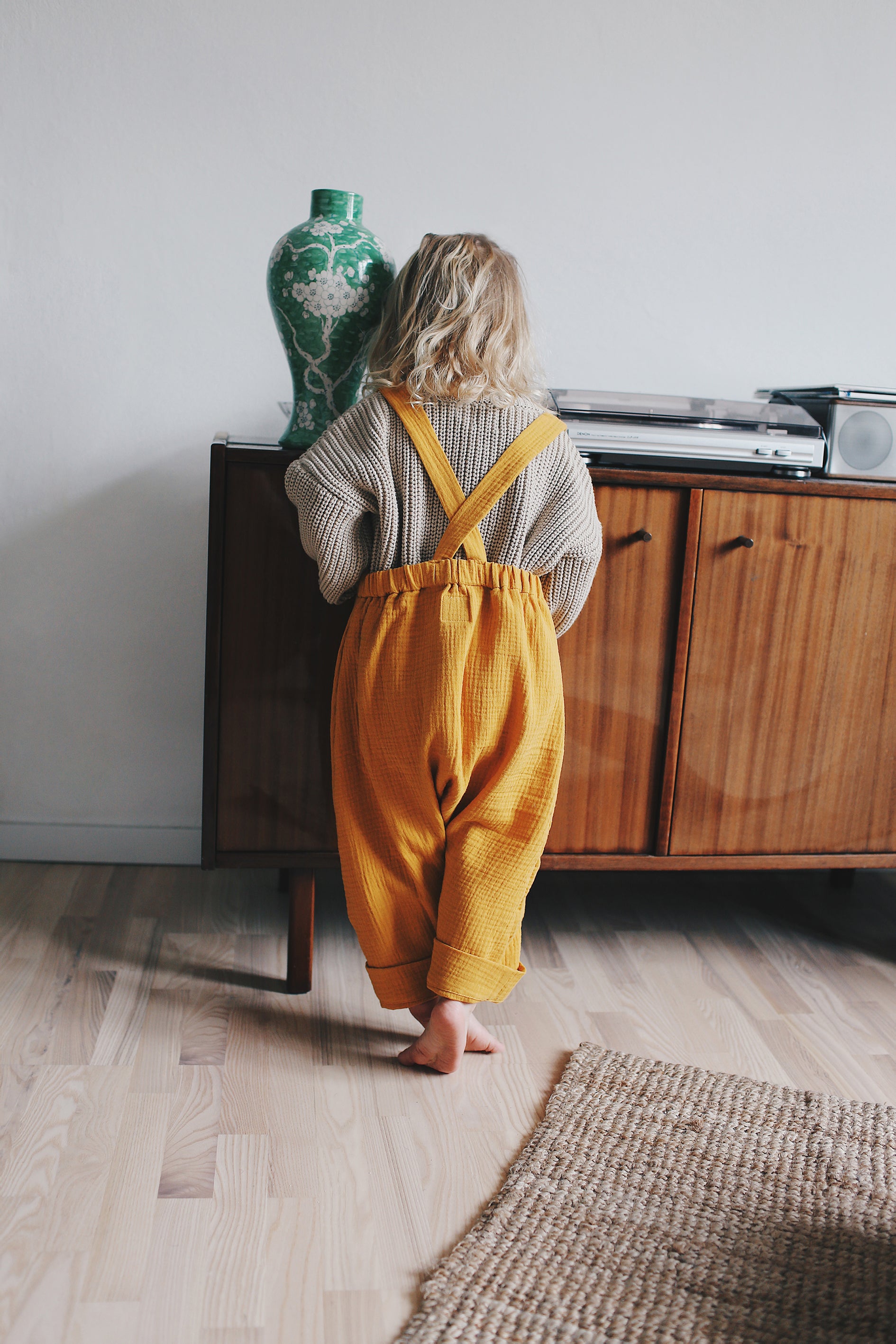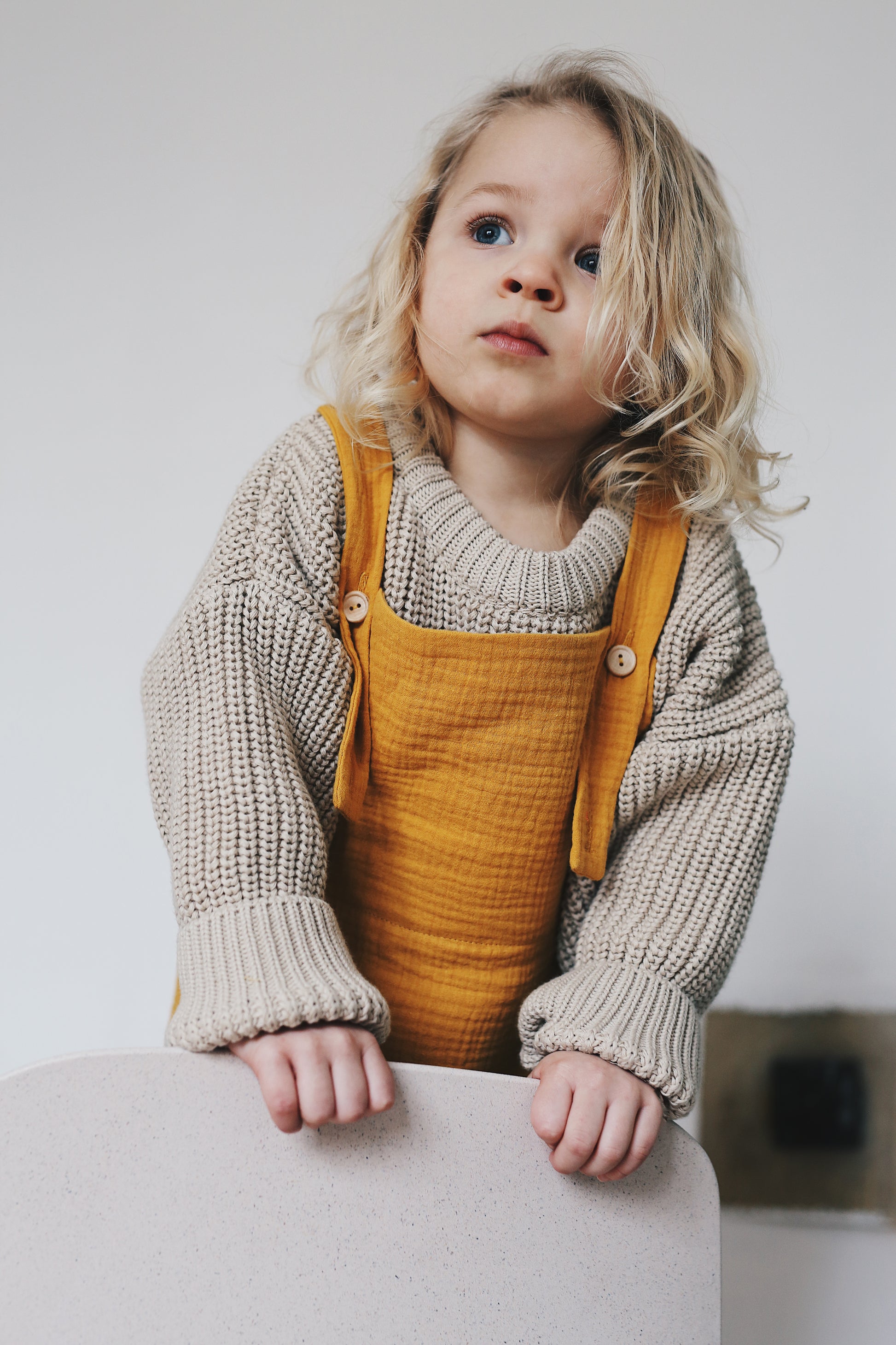 wygodne, przewiewne ogrodniczki z regulowanymi ramiączkami, uszyte z mięciutkiego, podwójnego muślinu tkanego z bawełny organicznej. świetnie pasują do cacanych muślinowych bluzeczek, sweterków i tshirtów. dostępne w słonecznej żółci.