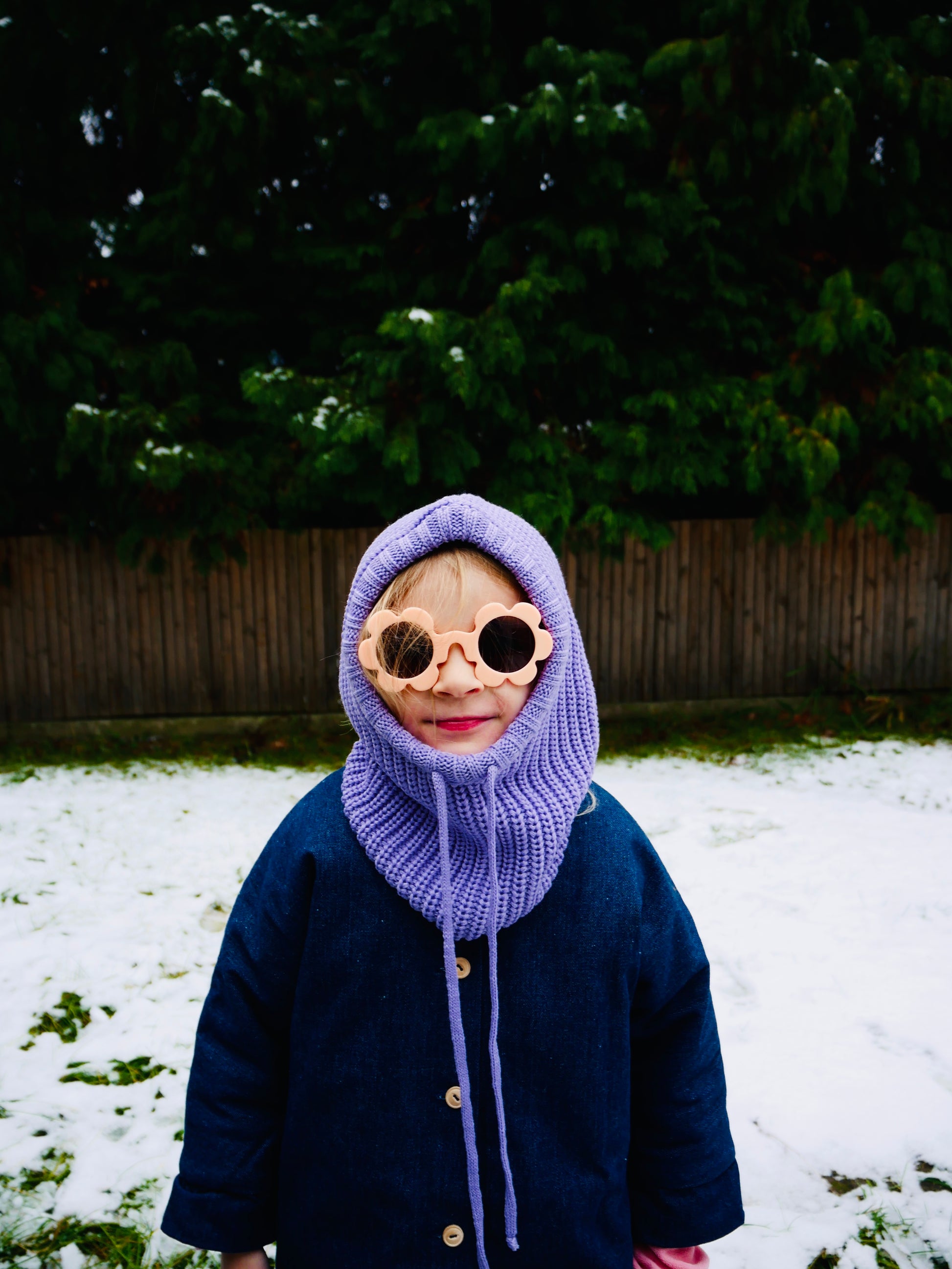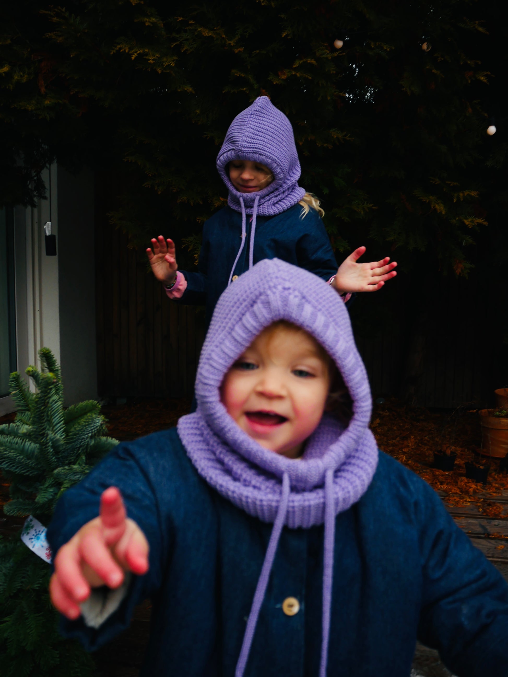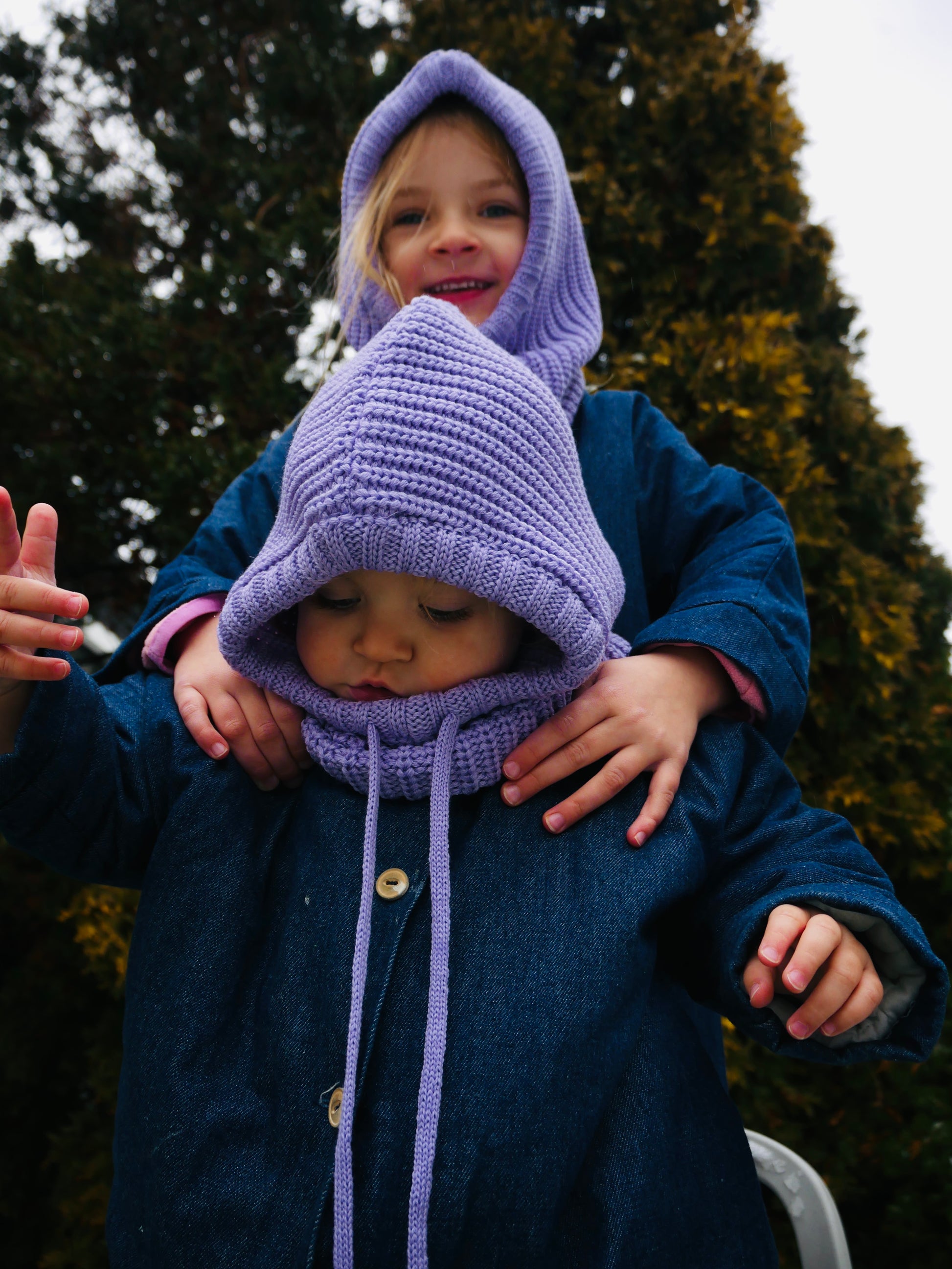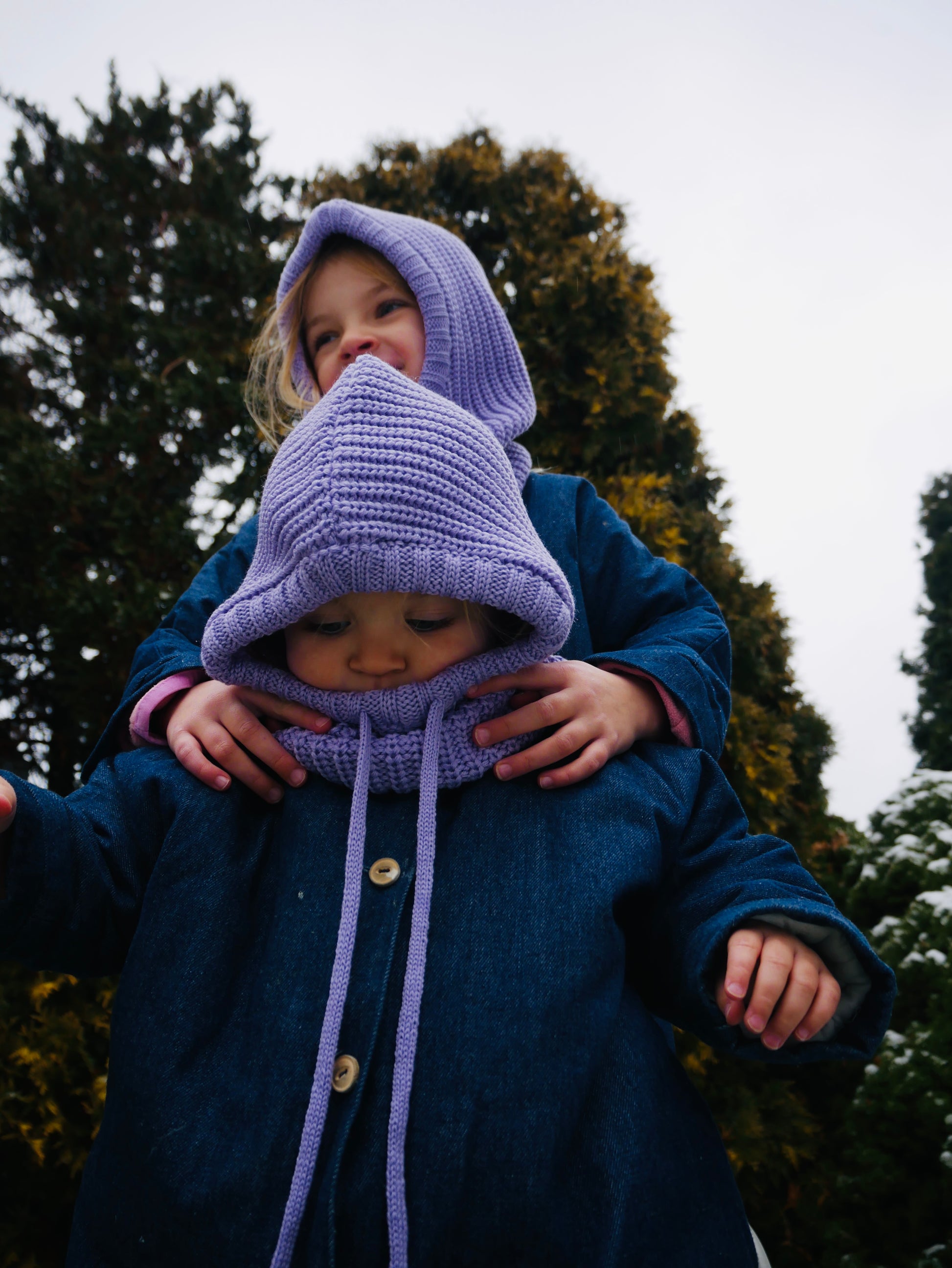 bardzo miękka i ciepła fioletowa kominiarka wykonana z włoskiej przędzy merino. doskonale ochroni główkę i szyjkę przed zimnem. dostępna w jednym rozmiarze pasującym dla dzieci w wieku od 1,5 roku do 9 lat.
