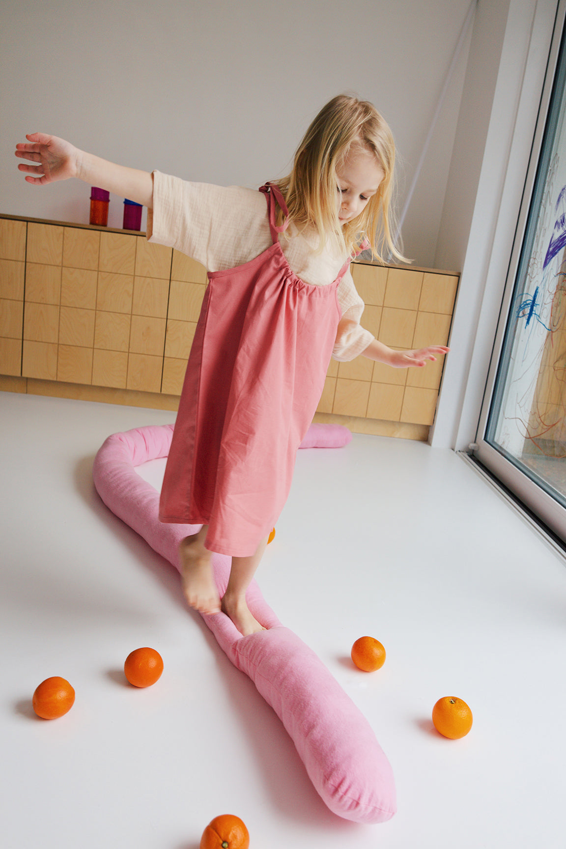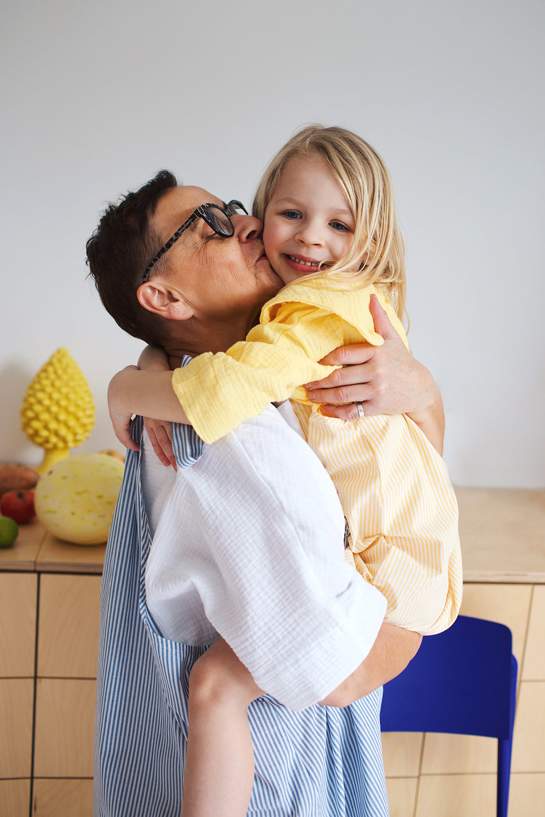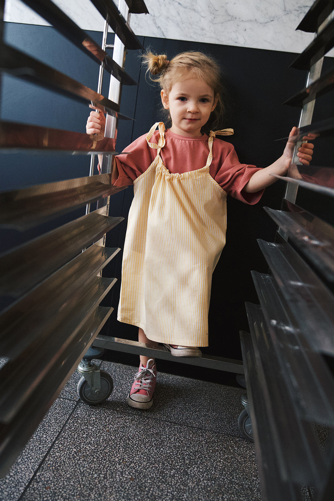 urocza spódniczka na ramiączkach uszyta z delikatnej popeliny w biało-żółte paski z możliwością regulacji długości.