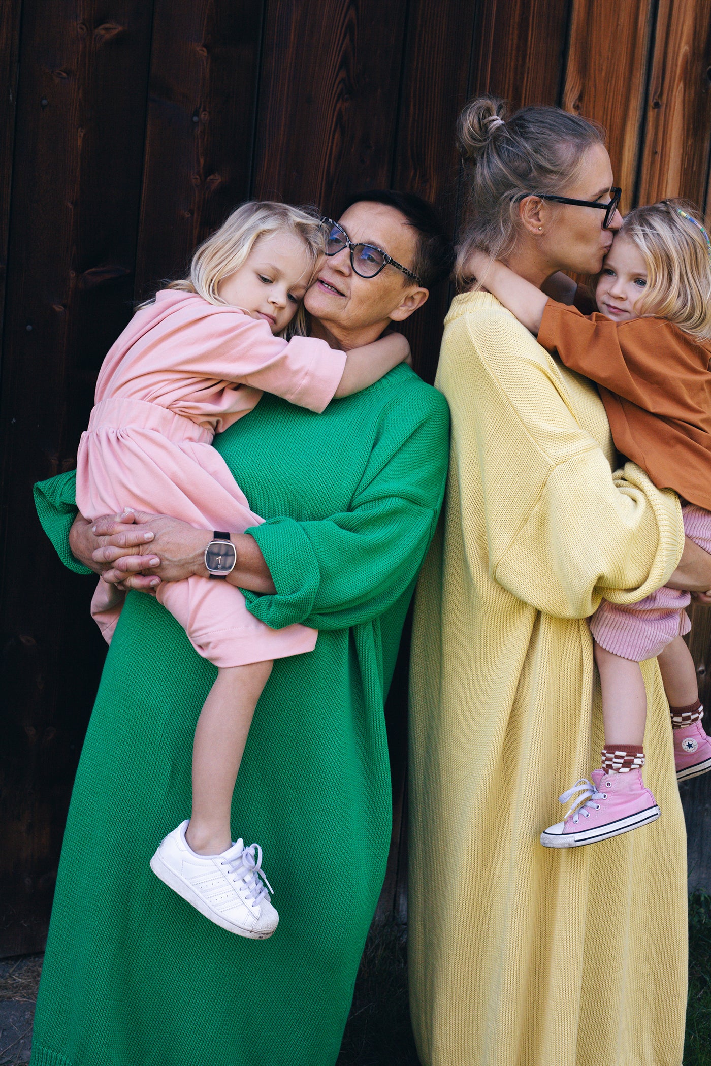 dzianinowa, oversizowa sukienka damska. wykonana z włoskiej bawełnianej przędzy składającej się w 50% z bawełny organicznej i w 50% z bawełny recyklingowanej.