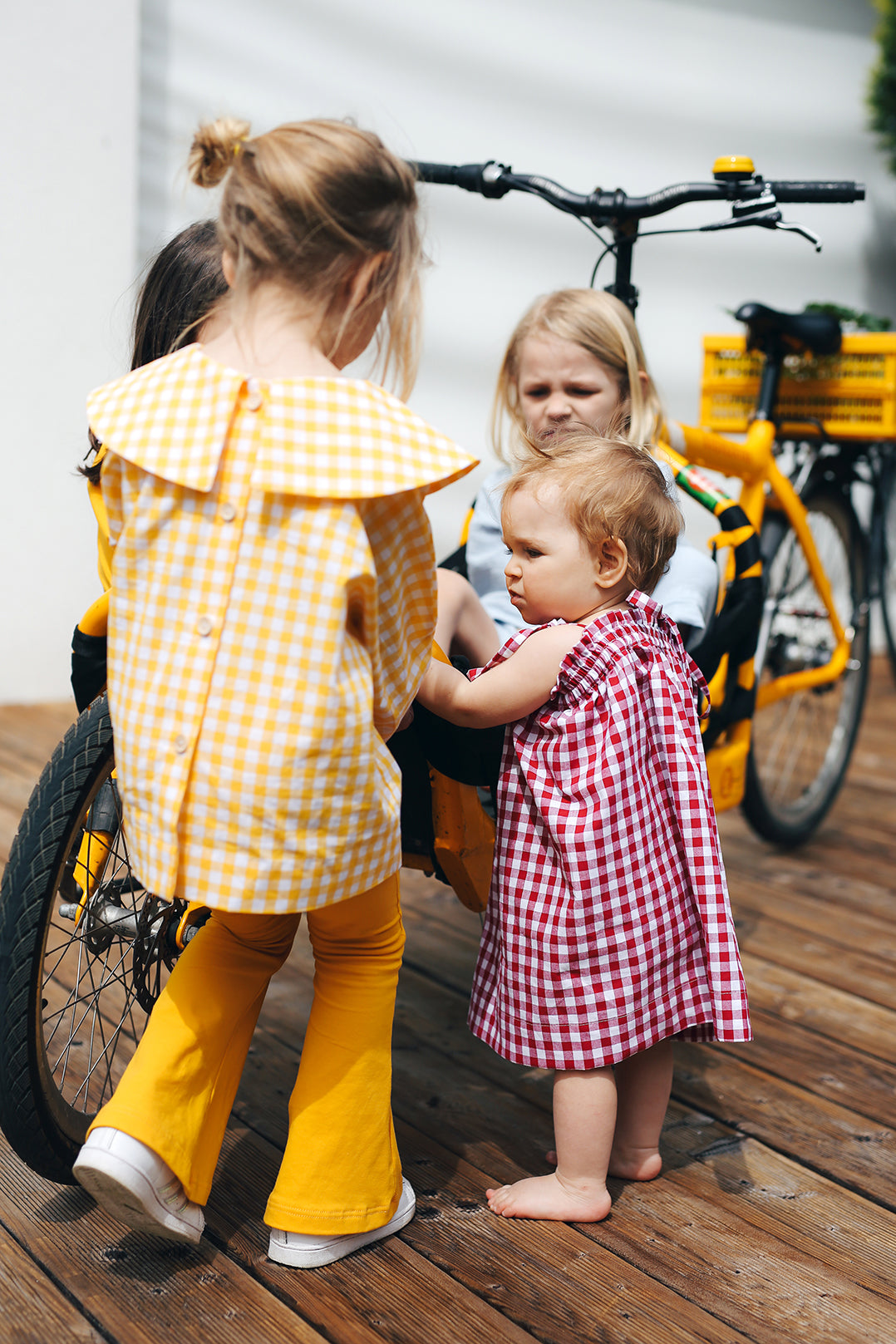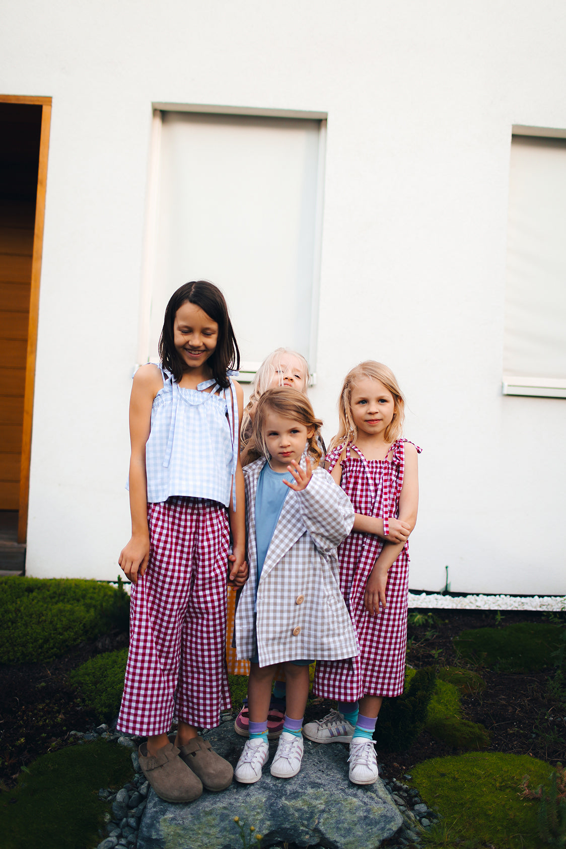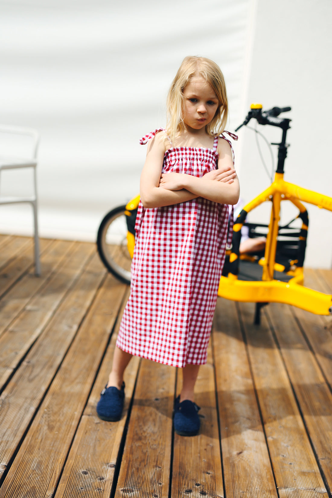sukienka na wiązanych ramiączkach w biało-malinową kratkę